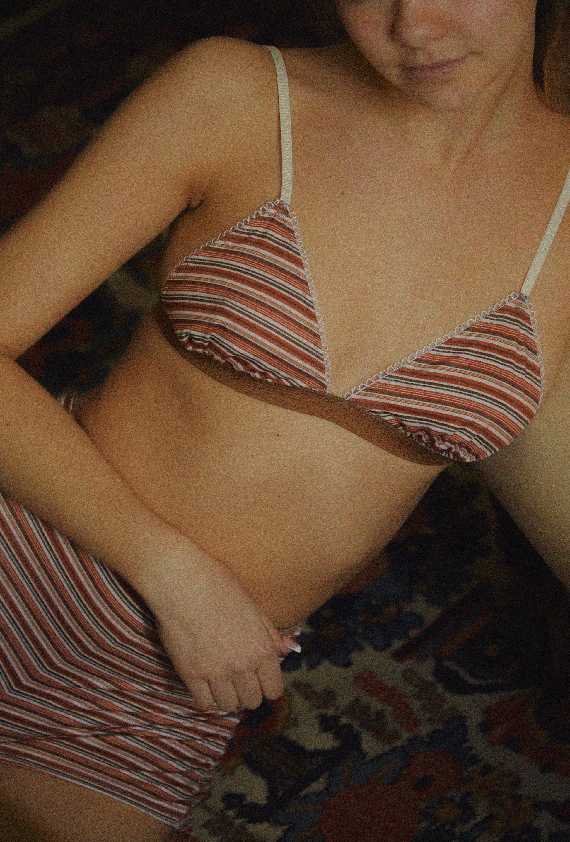 Comfortable wireless support and two adjustable straps. We consider The Henna Stripe Triangle Bralette true to size but if you are between sizes, we recommend sizing up for maximum comfort!