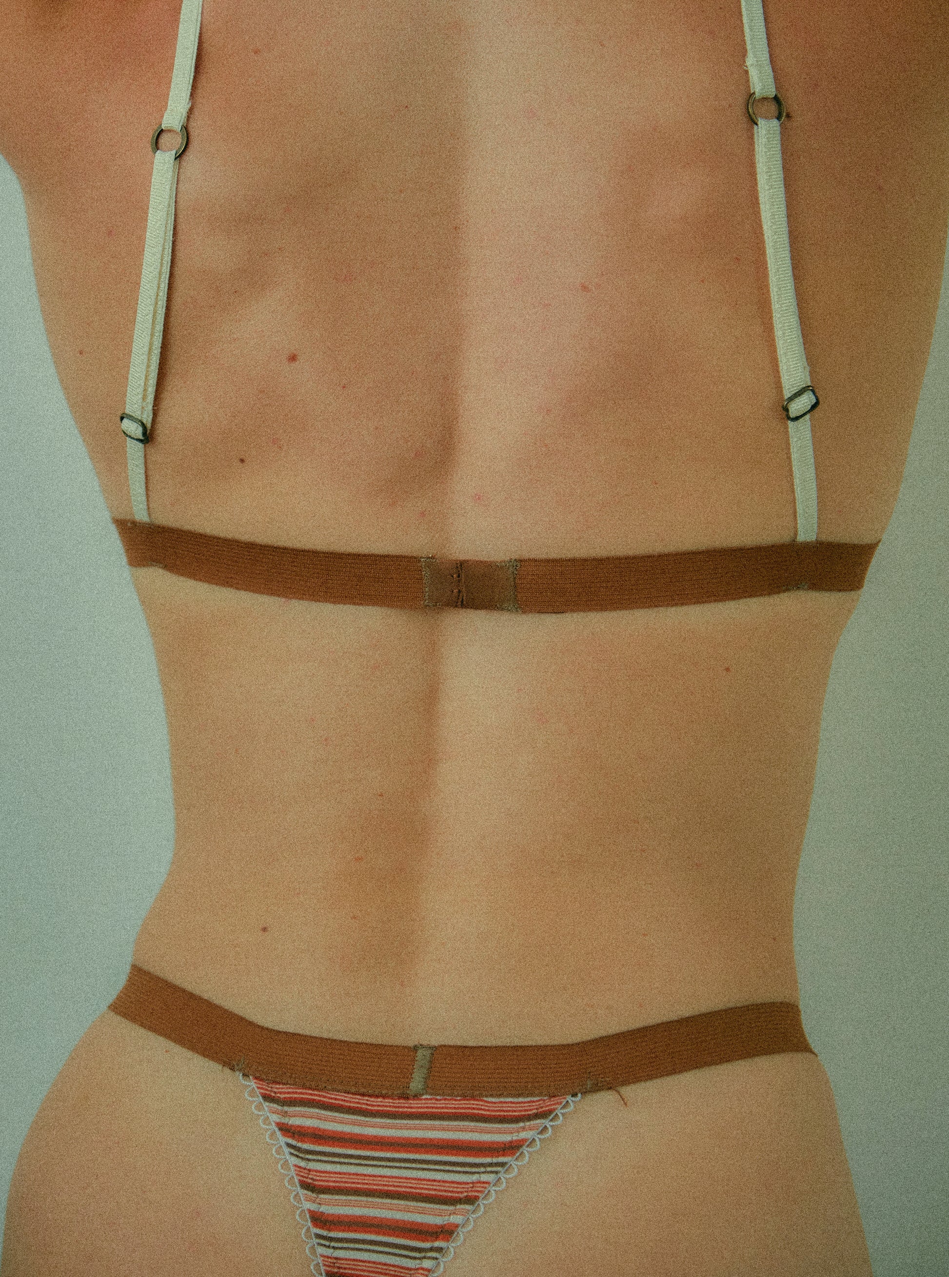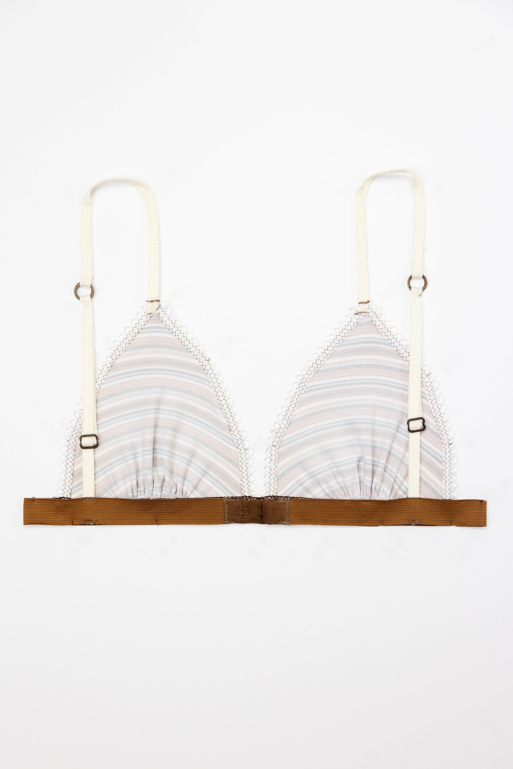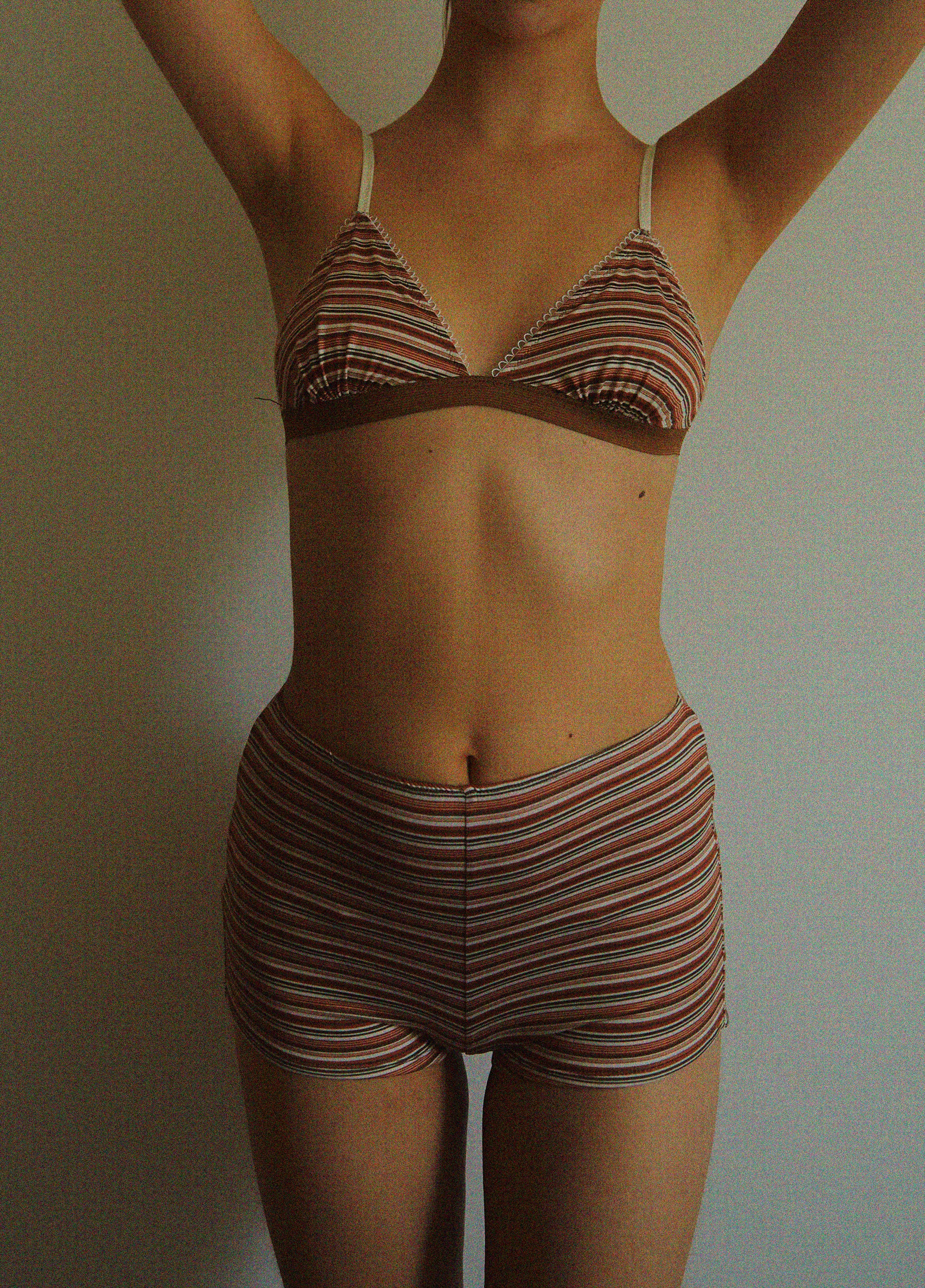 Your new everyday bralette with a nostalgic touch. Featuring wireless support and gorgeously soft recycled jersey, the Henna Stripe Triangle Bralette perfectly combines effortless comfort with playful prints. Pair with our matching thongs or briefs for the cutest stripy set or throw on under your favourite white T.