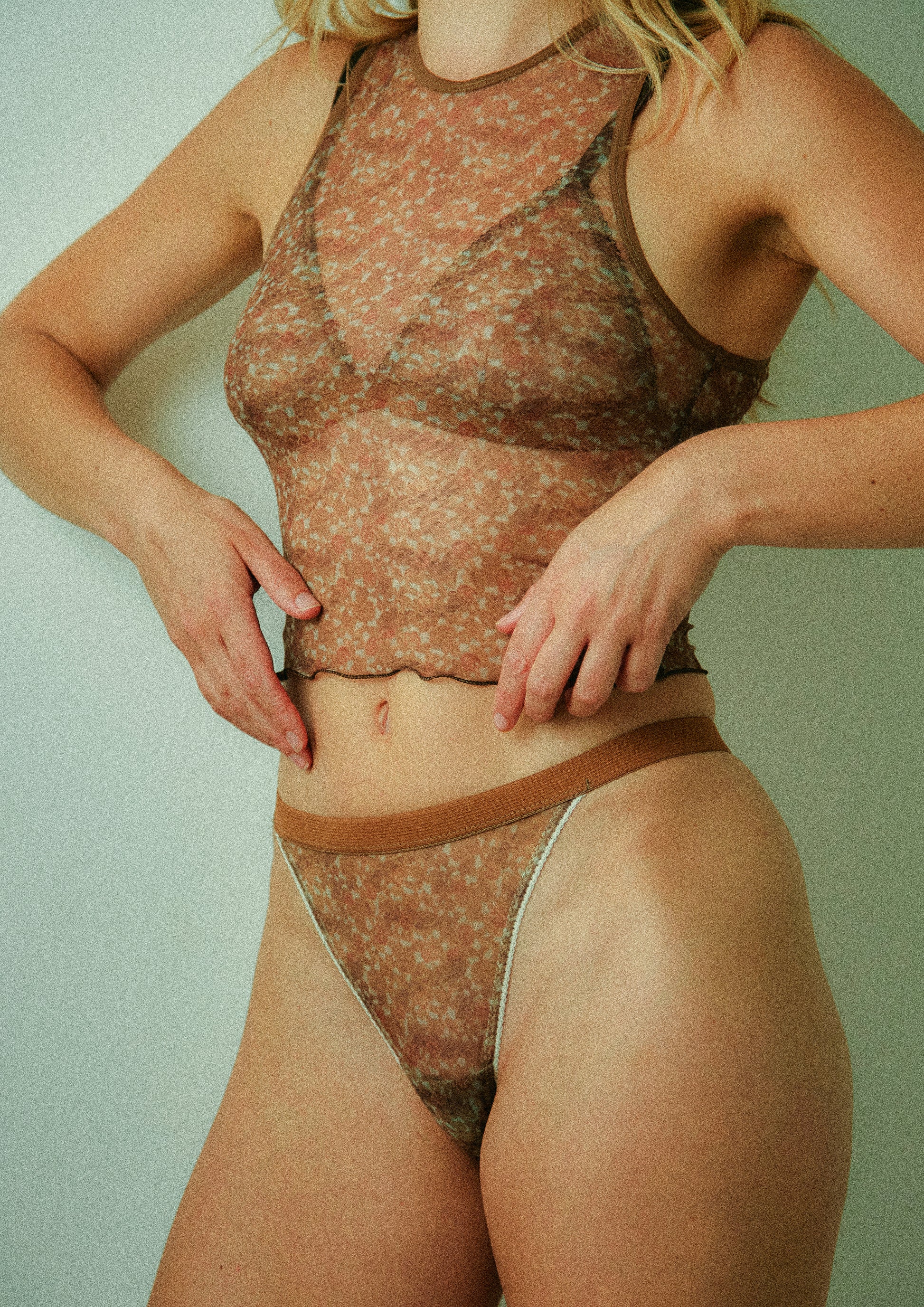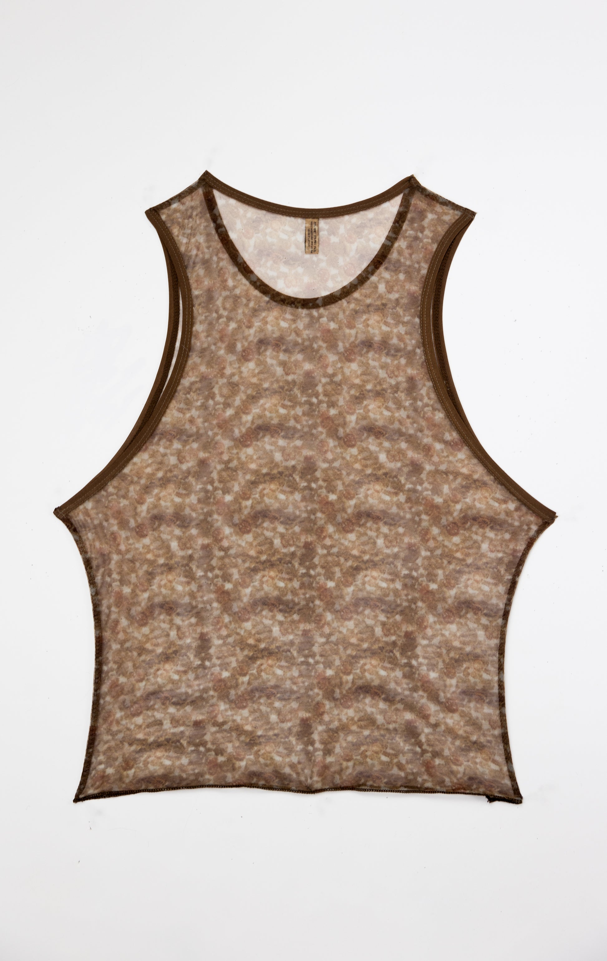 Say hello to your new favourite classic staple with a twist. The Lacy Mesh Racer is made from the softest recycled mesh and features a subtle vintage lace repeat print in earthy tones. Sexy, sheer, soft, and stretchy, this is the go-to cool girl essential. From lounging around at home, to dinner with the girls, to out dancing till 5am, this is truly the ultimate day-to-night staple. Layer over our matching triangle bralette for a sheer on sheer moment or go braless and put the 'racy' in racer back.